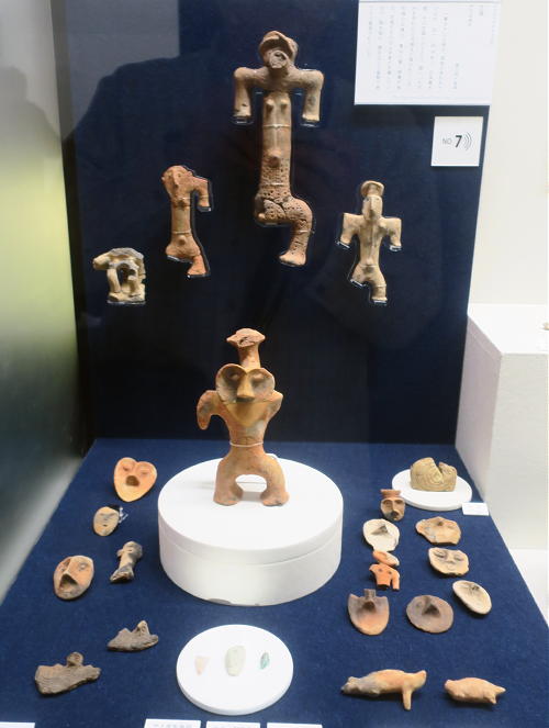 後ろの中央の大きな土偶は、全長41.4センチで日本最大級の物だという。 |