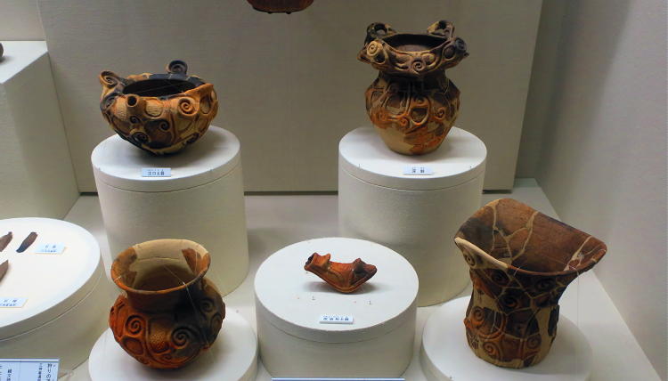 ・縄文土器:高柳遺跡や野川遺跡などから出土した土器を展示。