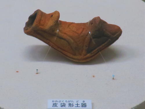 高柳遺跡の縄文土器や上野遺跡の皮袋型土器、大野田遺跡のハート型土偶などが展示されている。