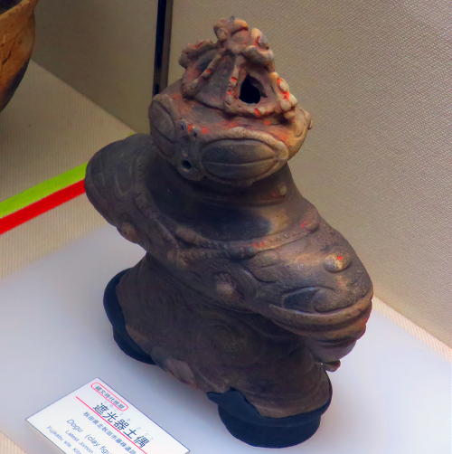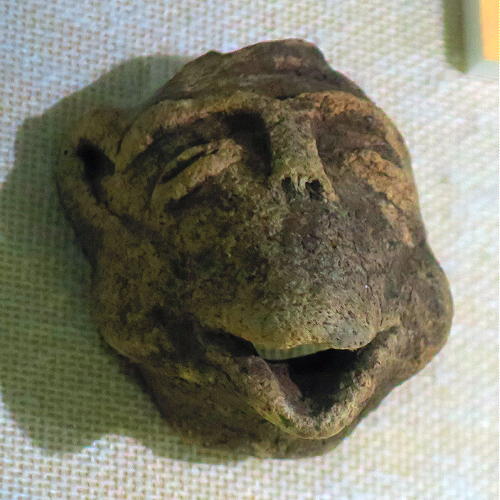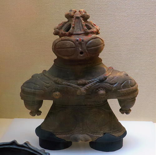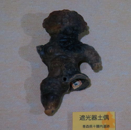 足がないのは残念だが、非常に状態のいい「遮光器土偶」頭に朱が残っている。