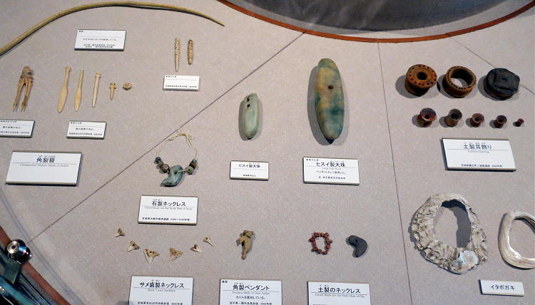 総合展示室では 旧石器時代から近現代まで、時系列で東北地方全域の歴史を9ゾーンで紹介。縄文時代のコーナーでは、仙台湾沿岸の貝塚文化やナラ林での暮らしなどがテーマになっている。