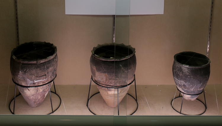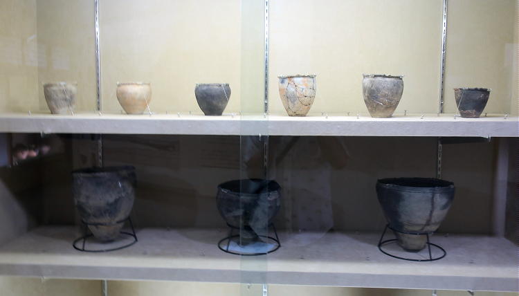 | 山王囲遺跡から出土した縄文晩期の「土器」が展示されている。 |