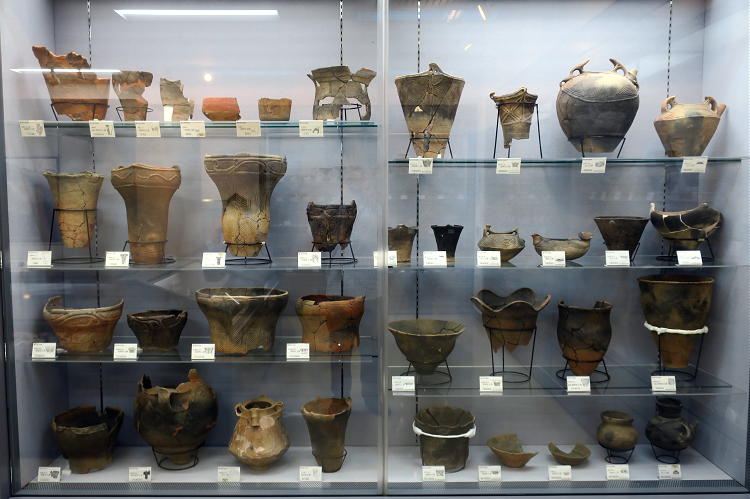 | 縄文時代草創期から晩期までの「土器」の移り変わりが、展示されている。 |