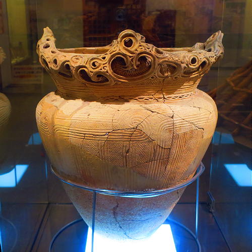 | 土器。すぐ隣の新潟などとの交流を物語る、縄文時代中期の「火炎系土器」が展示されていたのはうれしい。 |