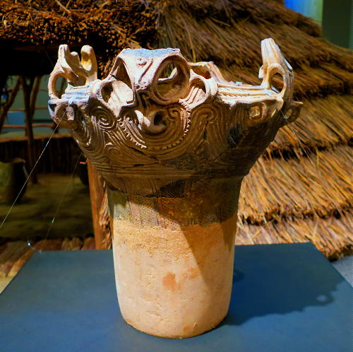 ・特に縄文中期~後期の火焔系土器が見どころ。新潟火焔土器との関係や交流を物語る造形と技法の痕跡が体感できる。