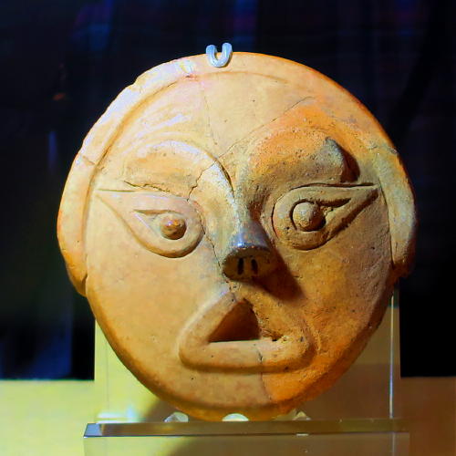 お面のように見えるが、有孔鍔付土器の装飾として貼り付けたもの。