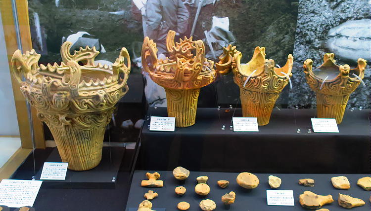 | やはり新潟だ。吉野家遺跡出土の「火焔型土器」と「王冠型土器」が展示されている。 |