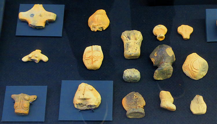 右、土器把手(人面形) |