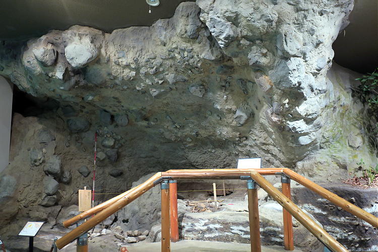 栃原岩陰遺跡は、考古博物館から3.5キロ離れた場所にある。