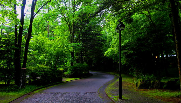 | 「軽井沢の別荘」を利用できる最後の朝を迎えた。相変わらず天気は良くないが、周辺を散歩する。 |