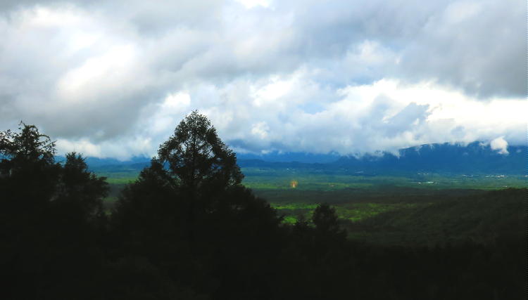 | 浅間高原シャクナゲ園は、シーズンが終わったのか「何もなかった」。その駐車場から、草津方面を望む。 |