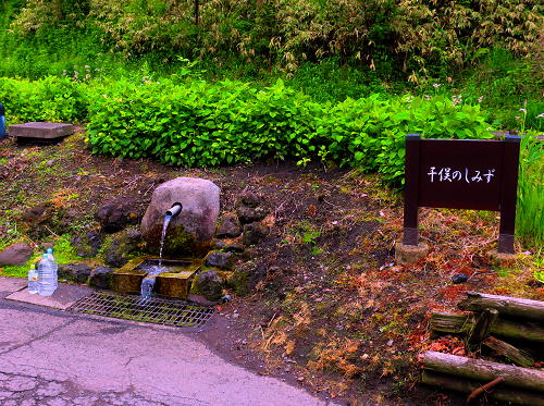「干俣の清水」で給水。 |