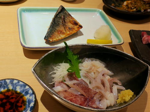 「鯖の塩焼き」と「イカ刺し」も注文。 |