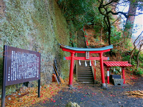 99段の石段を登りつめた頂上には、厳島神社が鎮座している。