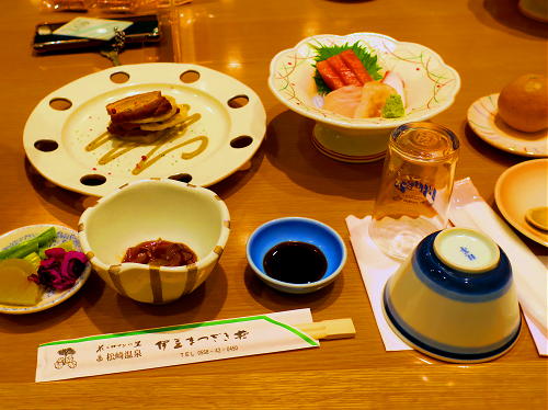 温泉に入浴後は、お待ちかねの夕食だ。 |