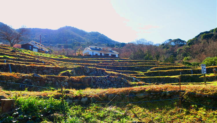 | 「石部棚田」は、東日本では珍しい石積みの棚田で、眼下に駿河湾を一望出来る。晴れた日には、富士山・南アルプスをも望める絶景の棚田だ。 |