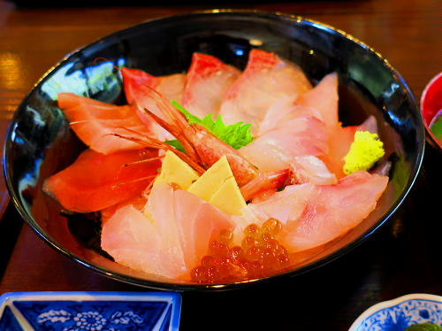 下賀茂温泉の「地魚料理 信」に入り、「おまかせ海鮮丼」を注文。 |