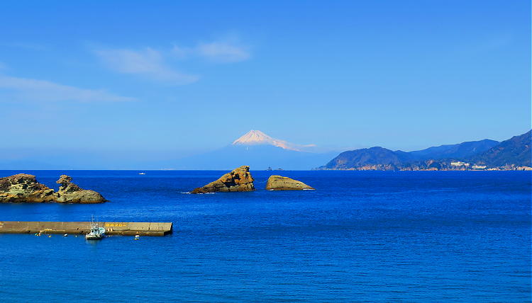 | 松崎町では、「世界でいちばん富士山がきれいに見える町」との宣言をしている。「雲見海岸」からは、駿河湾に鎮座する雄大な富士山が眺望できる。 |