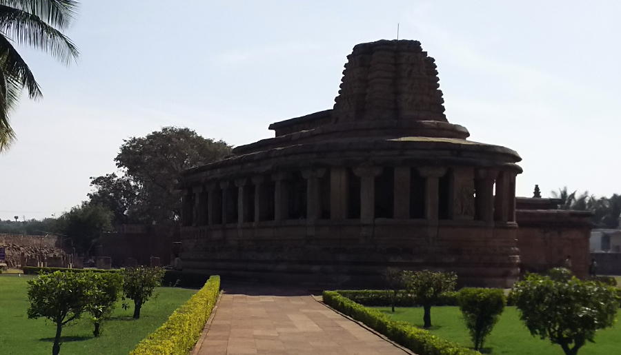 | 遺跡公園を出て、数分走った所にフッティマディグリ寺院(Hucchimali Gudi Temple)がある。フッティマディグリ寺院は、6世紀に建立された前期チャールキア朝の代表的な寺院。北方型のシカラを持っている。 |