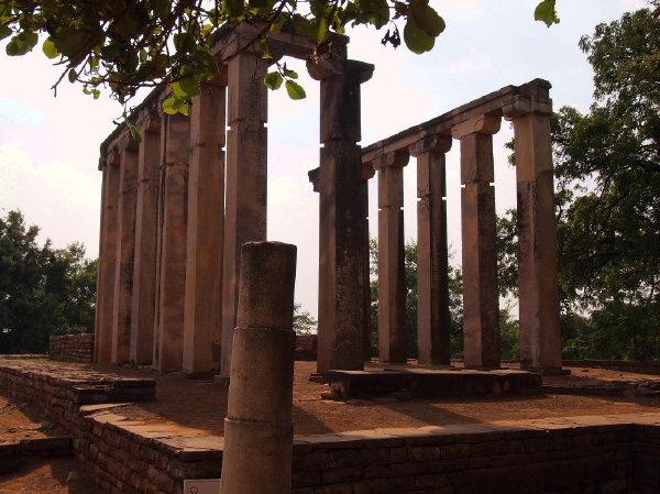 「サーンチーの第18寺院」は7世紀中期の建造。馬蹄形のプランをした祠堂で、列柱は残っているが内陣部のストゥーパは失われている。