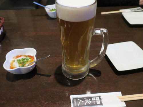 まずはビールで乾いたのどを潤す。 |