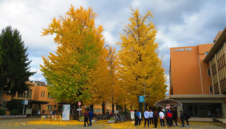 | ■13:02 「山形大学附属博物館」へ見学の為駐車する。大学の構内の銀杏並木が素晴らしい。 |