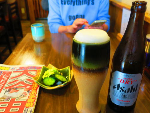 長距離ドライブと湯上りなので、まずはビールを痛飲する。