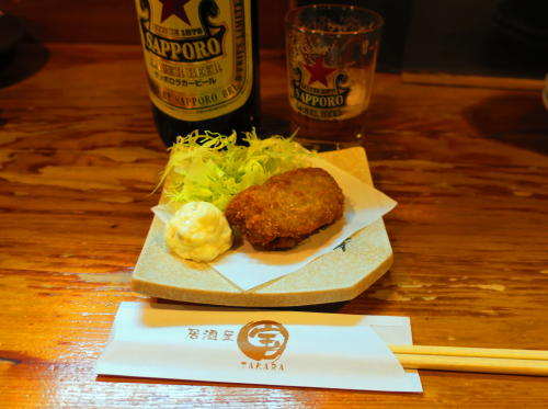 急いで5時の開店と同時に入店。この付け出しのコロッケで満腹となる。 |