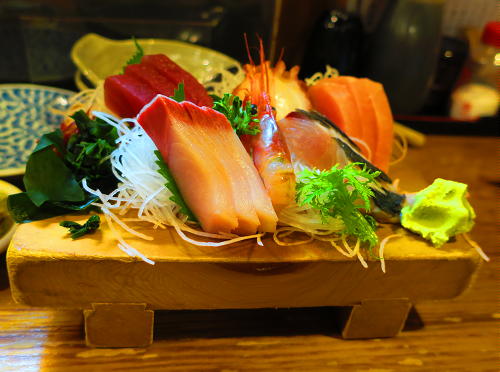 刺身の盛り合わせ。 |