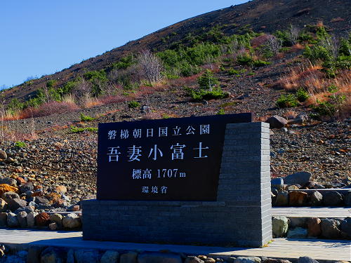 吾妻小富士は標高1707メートルで、頂上まで木の階段が整備されている。