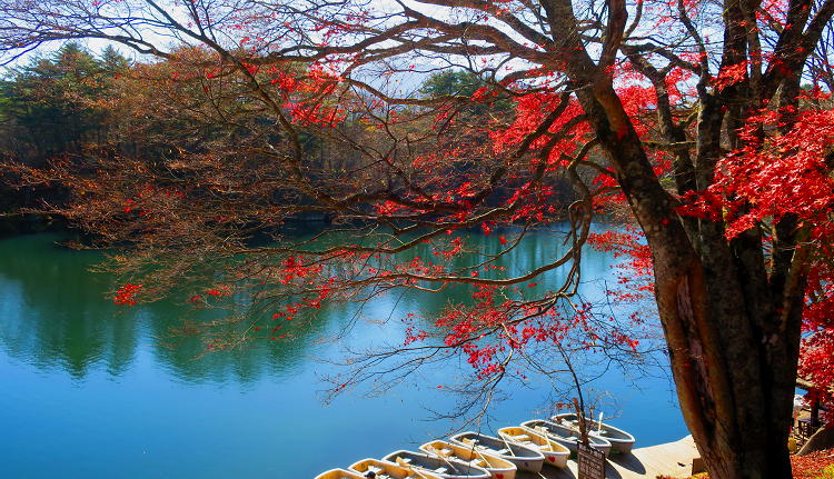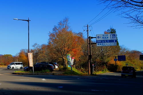 | ■12:11 「磐梯吾妻レークライン」を走り、五色沼の中で最大の沼である「毘沙門沼」に駐車する。毘沙門沼の紅葉とコバルトブルーのコントラストが美しい。 |