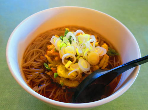 お昼の時間なので、意外と評判のいい「レストハウス五色沼」の「手打ちかき揚げそば」を食す。