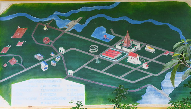 ●一口メモ…この寺院の地域は7〜11世紀に栄えたドバラヴァティ時代の古代都市があった。堀と建物の跡も残っており、多くの溝、尾根、墳丘などの考古学的痕跡が残っているという。