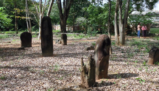 祠堂の前にセーマ石(境界石)が、不自然形で置かれている。セーマ石は、ドヴァラヴァティ時代の特有の遺物だ。