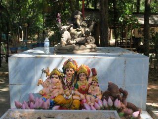 例えば上段にガネーシャ、下段にはシヴァ神と妻のウマ。それに、長男のガネーシャと次男のスカンダが飾られていたり、隣には、苦行者の姿をしたシヴァ神像が飾られてある。
