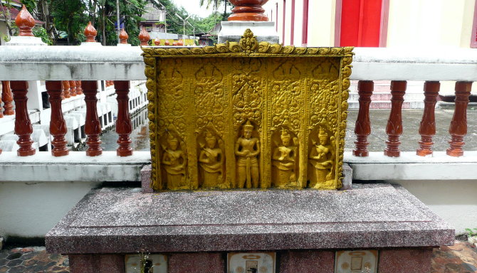 ●概要…本堂の前に置かれたクメール様式のレリーフとナーガは、12世紀のクメールの遺物と思われる。