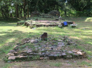 主祠堂の上部には基壇(ヨニ?)が置かれているが判然としない。シヴァ神を祀っていたとの説もあのでヨニなのか。 主祠堂の前方には、前殿の基礎部分が残されている。この遺跡は1メートル以上も掘り下げられているので、かなり古いものだ。