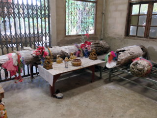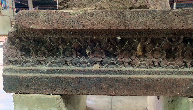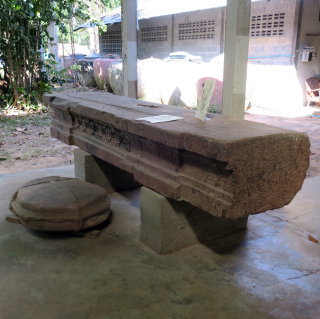 直ぐ近くに収蔵庫があり、そこに彫刻の施された基壇が置かれていたが、クメールでこのような文様を見たことがない。 彫刻を施された基壇の石とセーマ石(境界石)があると云う事は、ドバラヴァティも関係している。