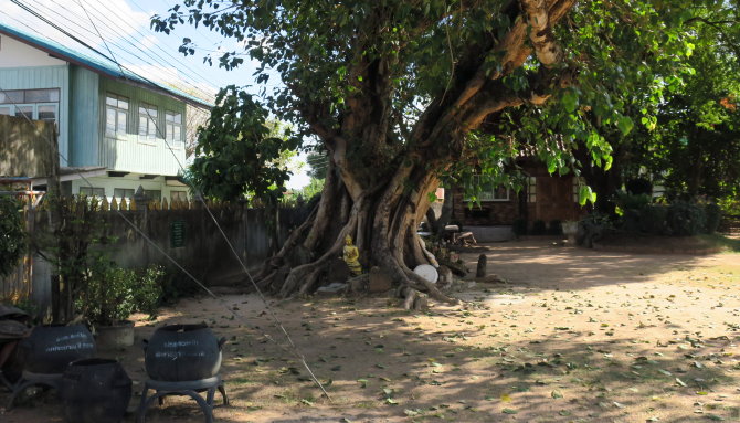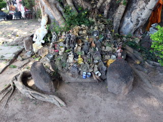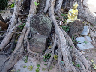 ●概要…寺院の入り口近くの大木の下に、クメールの遺物らしき石とセーマ石がある。その横には、何と!現代のコンクリートのブロックまである。