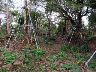 ●概要…「Prasat Plai Bat 2」遺跡は発掘調査の途中だった。遺跡の発掘のため、木には支柱で補強してあり、一基のレンガ造りの祠堂が建っていた。