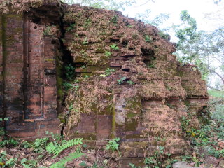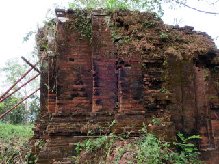 レンガ造りの祠堂には偽扉が彫られていた。周壁も残っており、かなりの規模の遺跡だったのだろう。