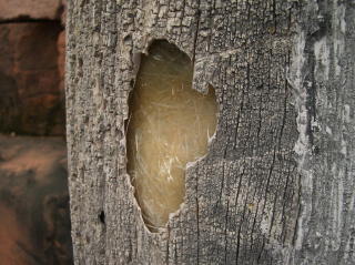 に下記のメールが来ました。「ふうみん」も添付の写真を見て、ガッカリするとともに、何か一杯食わされた唖然とした複雑な気分です。「T,I」さんのご指摘のとおり、多分あの木柱はプラスチックの張りぼてなのでしょう。