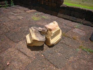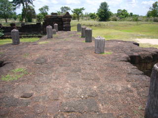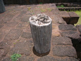 ●一口メモ…このクメール遺跡には木柱が残されている。通常、熱帯の気候の中では、木造の建造物は朽ち果ててしまい何の跡形も無い。クーノイ遺跡の木柱は化石になって残されている。何故この遺跡だけ化石化したのか?謎だ。