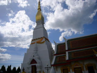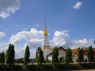 ●概要…サコンナコン市内随一の名刹。プラタートチューンチュムの高さ24メートルの白い仏塔は、11世紀に造られたクメールの祠堂の上に、アユタヤ時代レンガと漆喰でラオス風の仏塔に作り変えられたものだ。