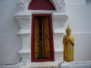 残念ながら入口の戸は閉まっていた。ロンリープラネットには「僧の誰かに開けるように頼むといい。僧達は観光客に馴れている。」と書いてある。ちょうど近くの僧に開けるように頼むが、返事はつれなくNOだった。残念!