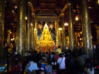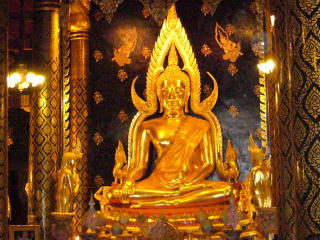 クメールの祠堂の裏に本堂があり、タイで最も美しいといわれるチンナラート(勝利)ブッタ(Chinnarat Buddha)が安置されている。