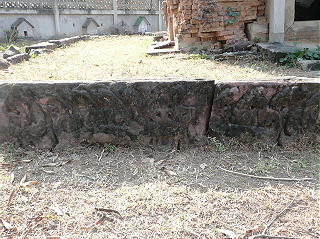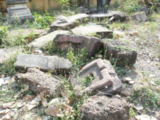 寺院の入口の大木の周辺にも、クメール遺跡の石が無雑作に置かれている。