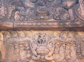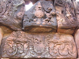 まぐさ石には手の込んだ彫刻が施されており、遺跡の左手にはバライ(聖池)が設けれれている。