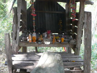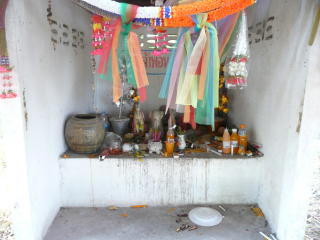小さな丘の上に小さな社が置かれ、その前にクメール遺跡の石らしきものがあった。これが、Prasat Bueng だ。