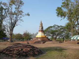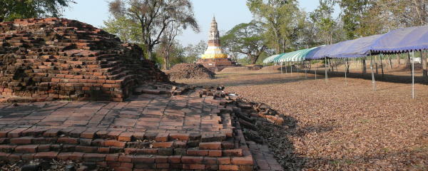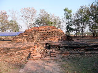 八角錐の煉瓦造りが特徴の仏塔で、ドヴァラヴァティー時代、アユタヤ時代、バンコク王朝時代の三時代に渡って建てられたと言う。